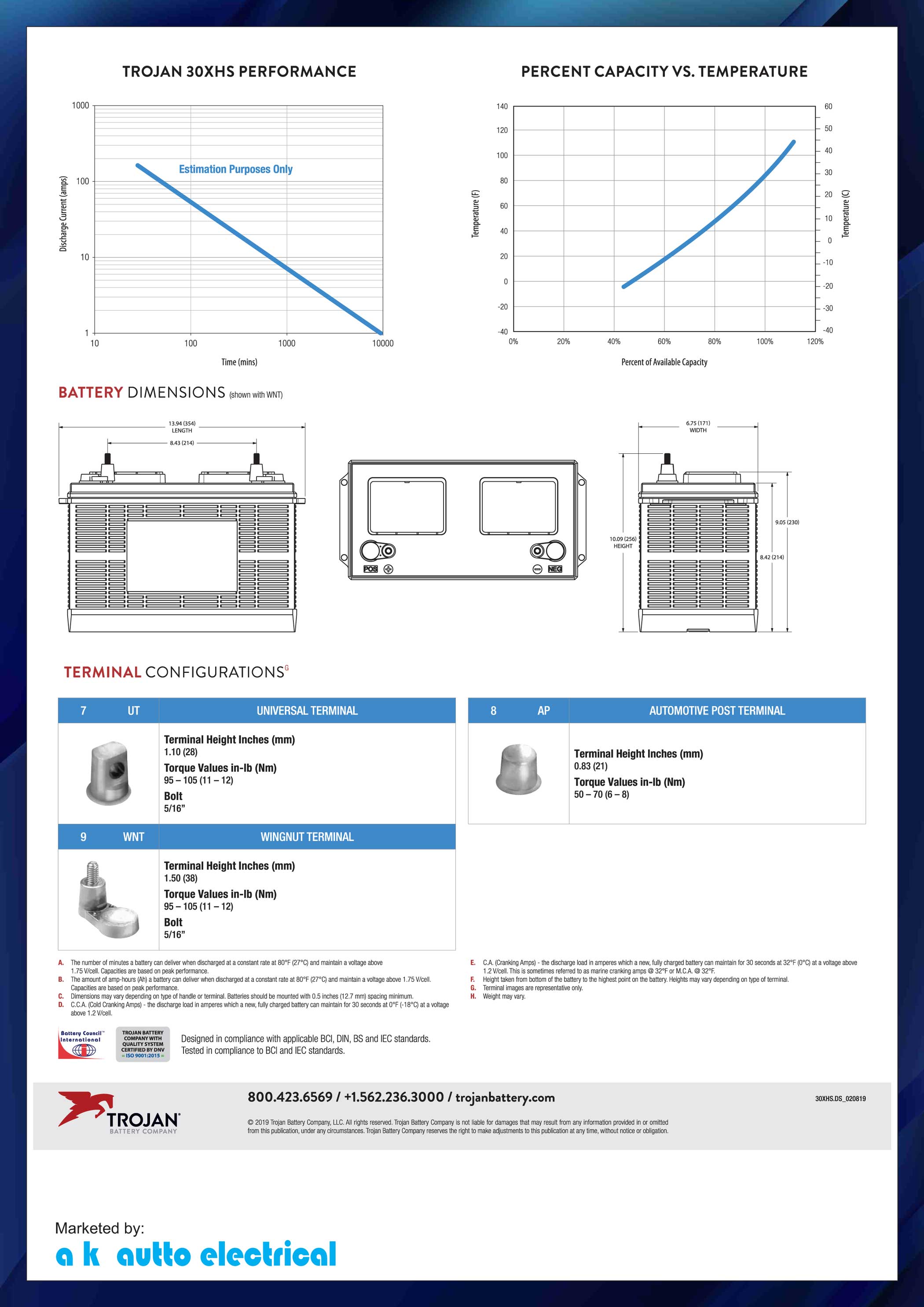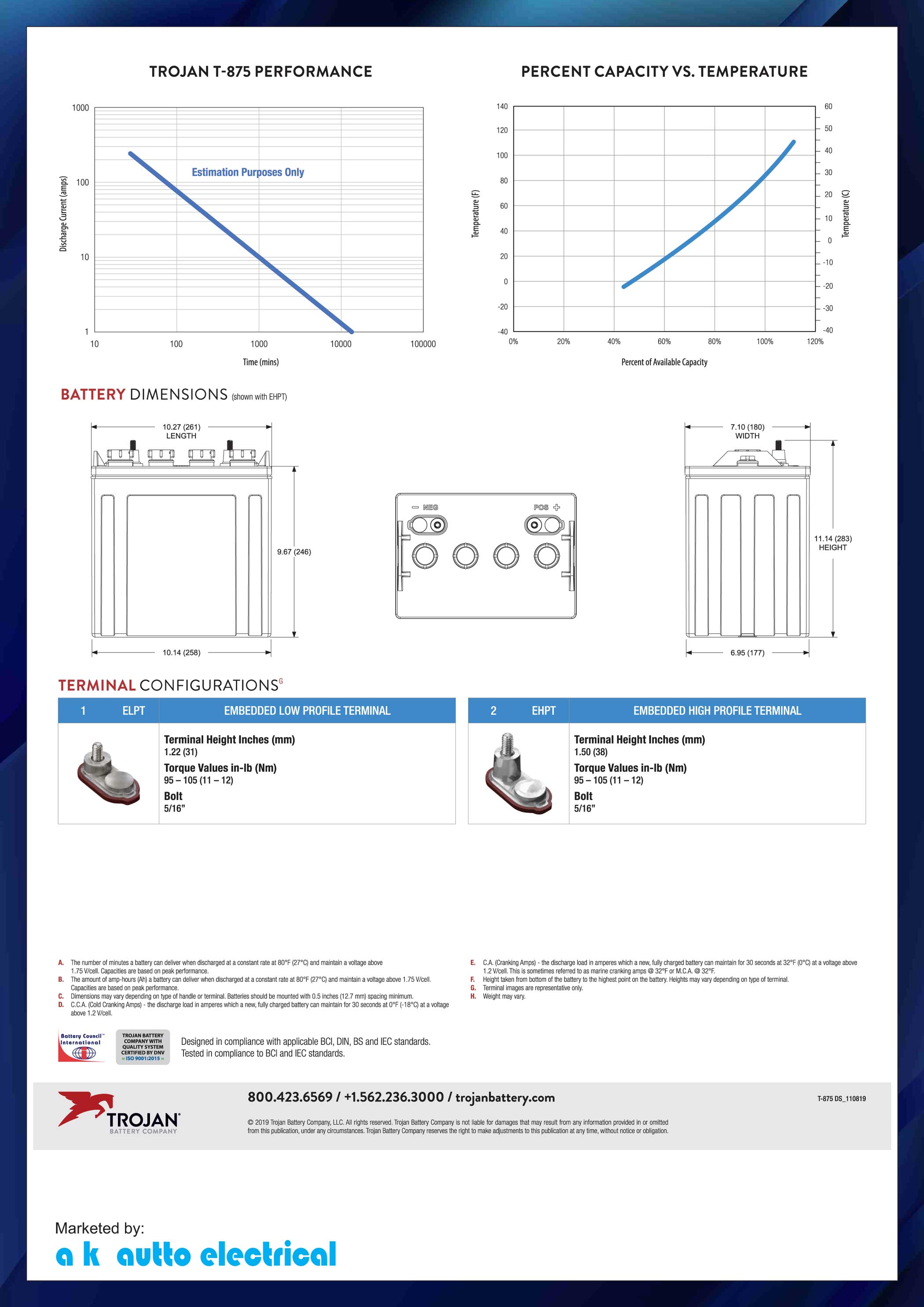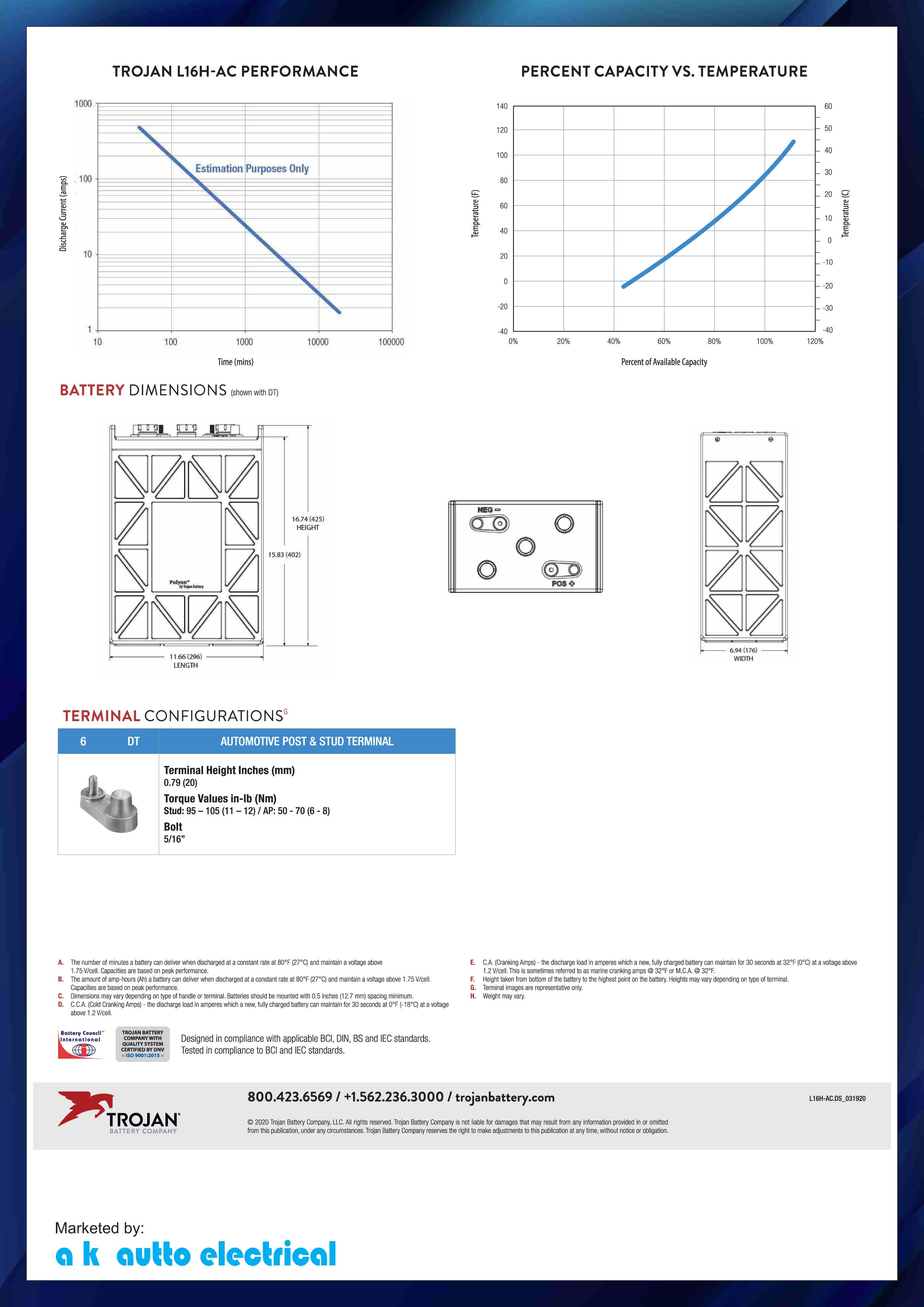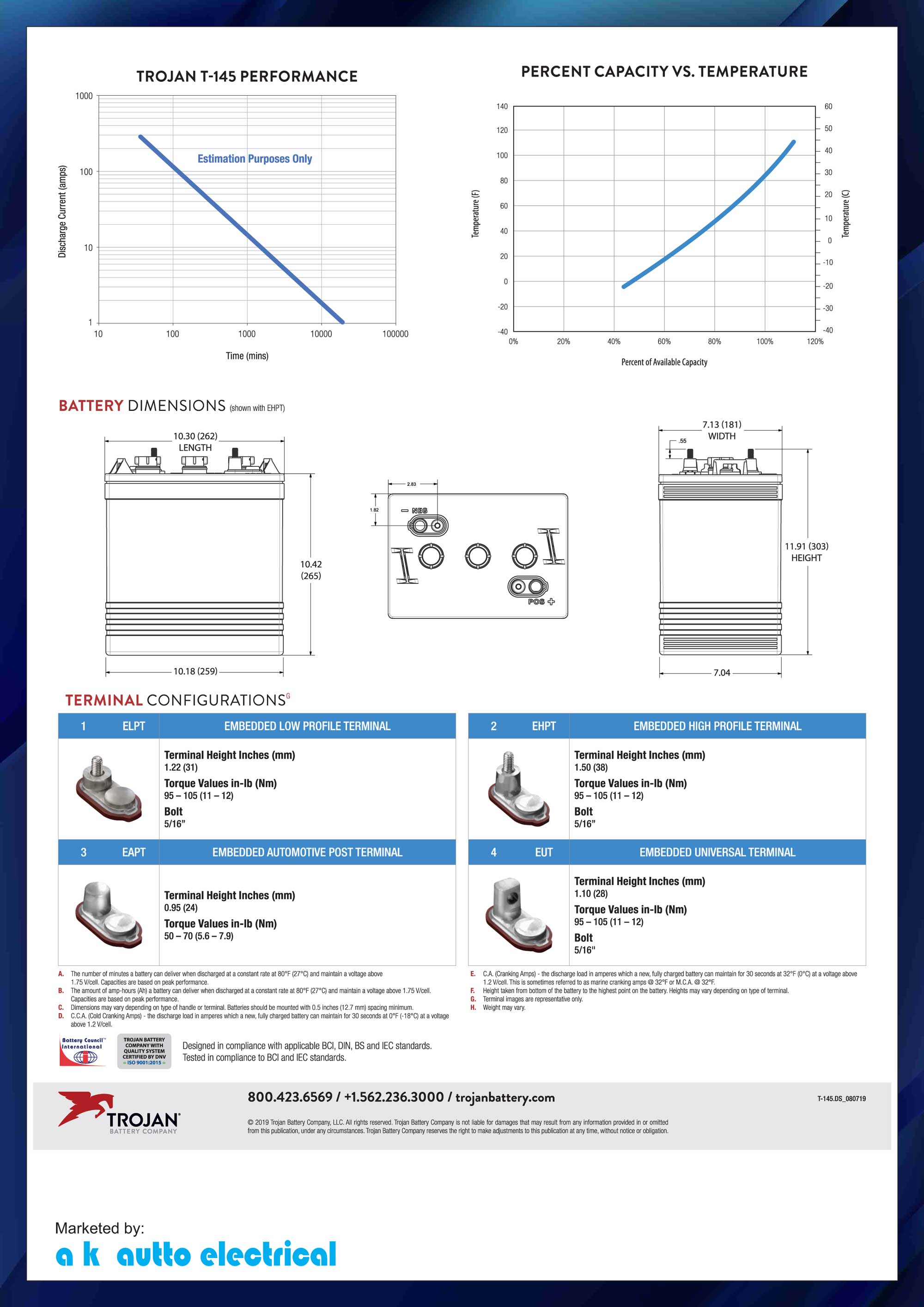 The Trojan Flooded Lead Acid Battery delivers high capacity and high energy