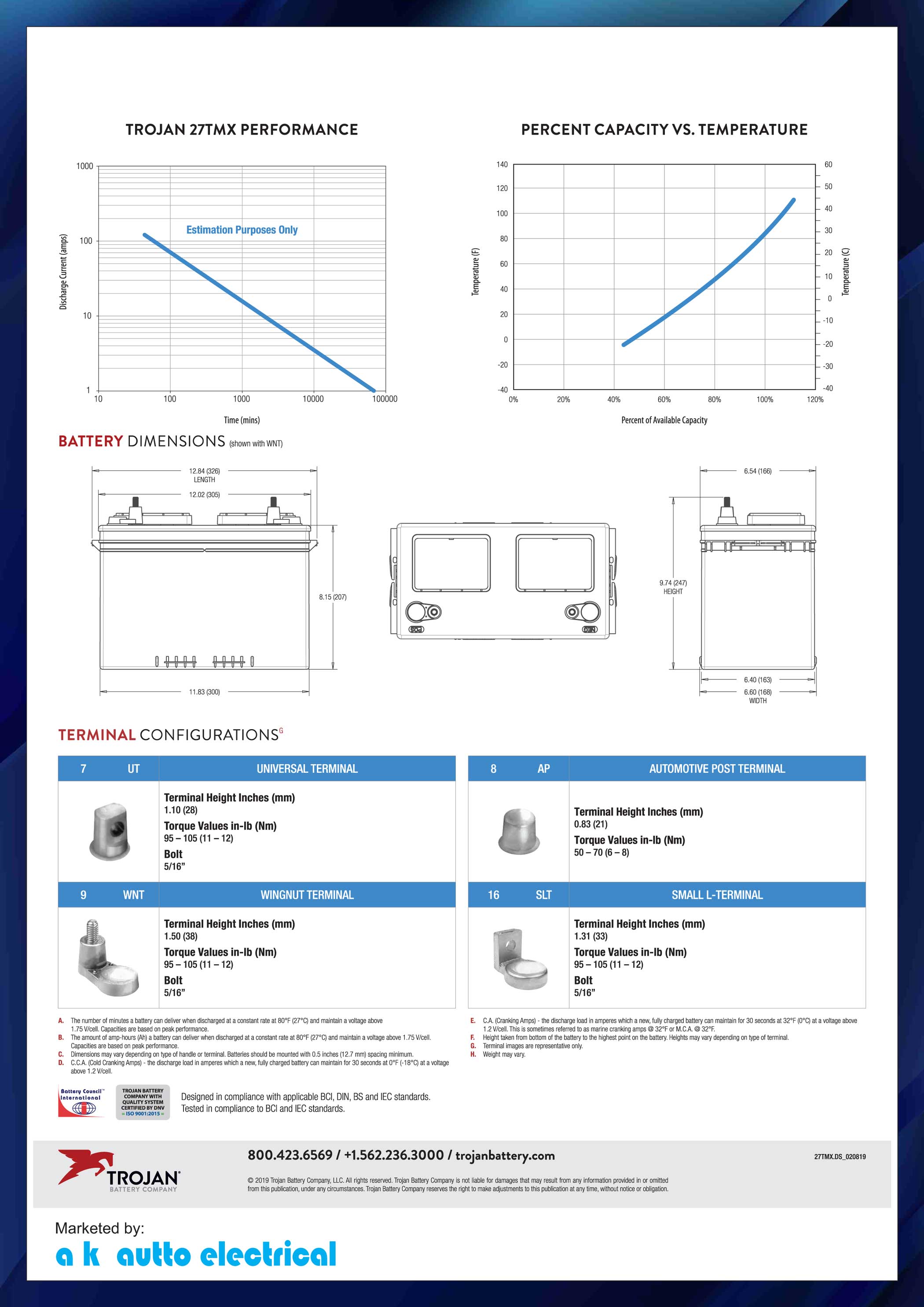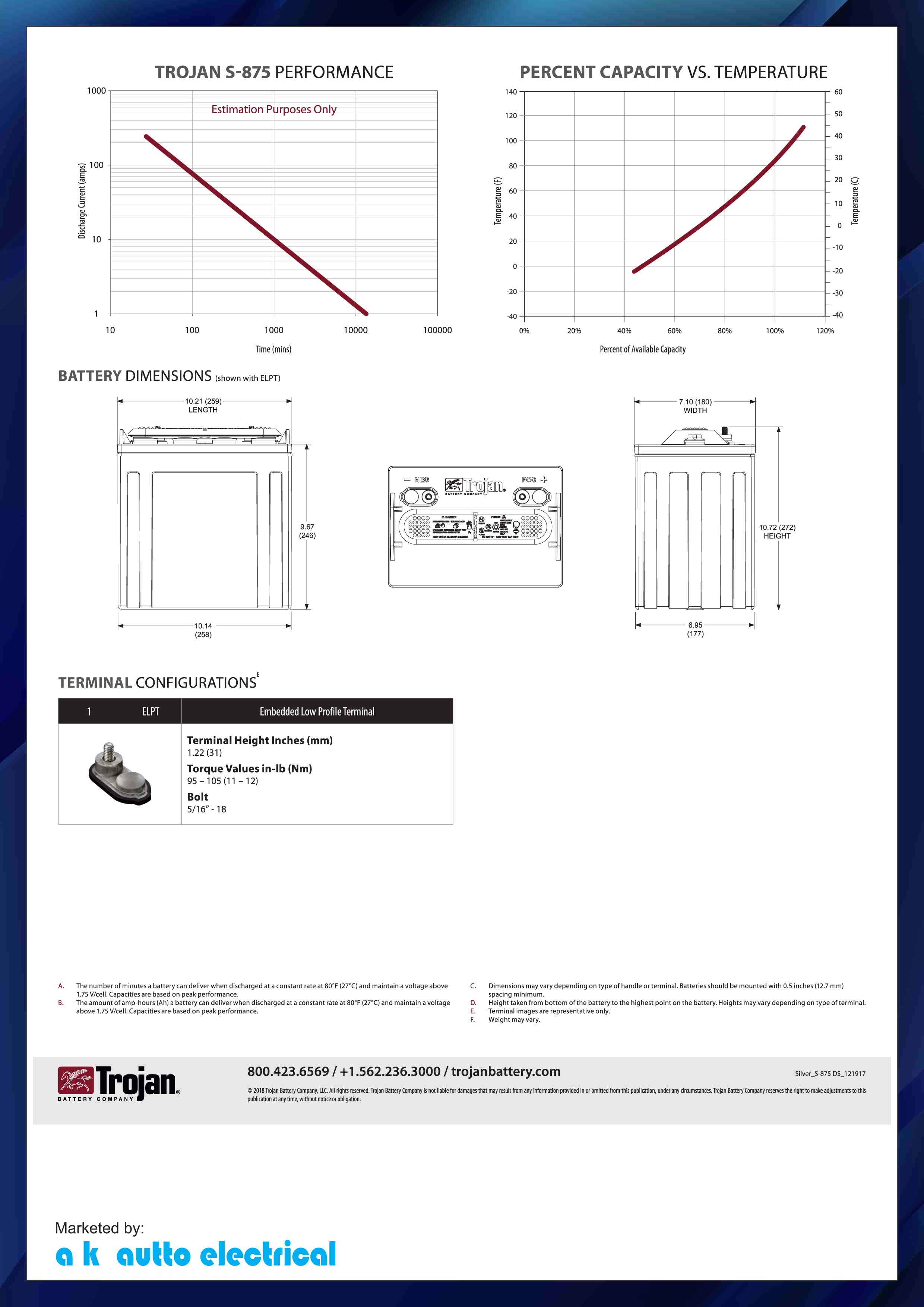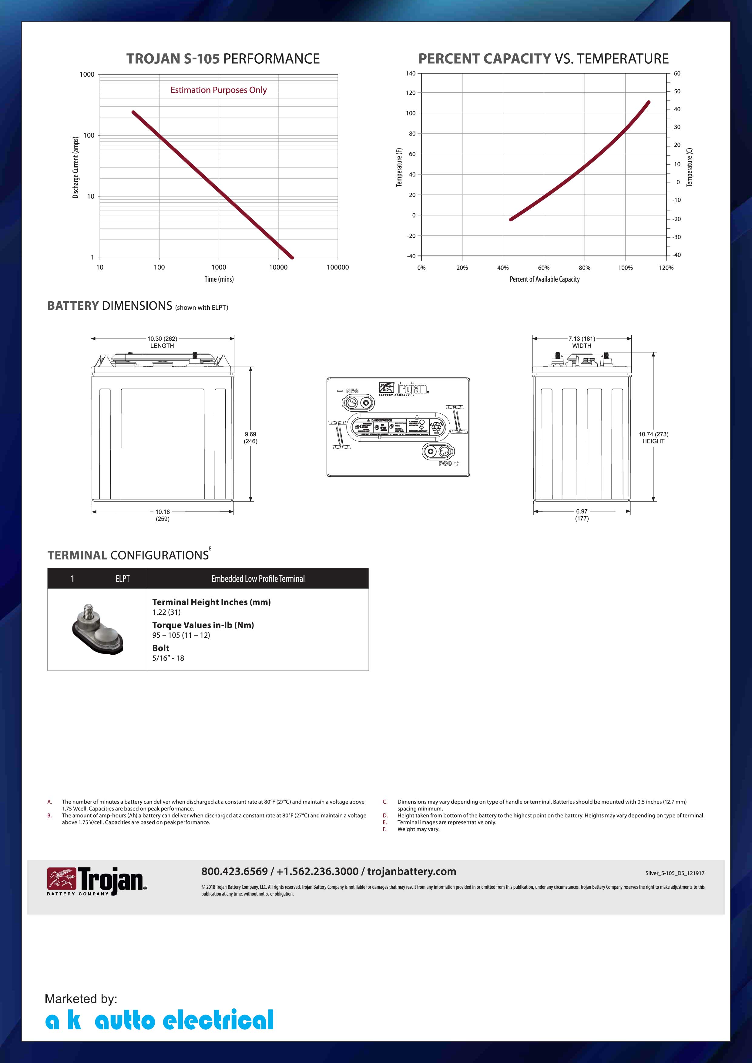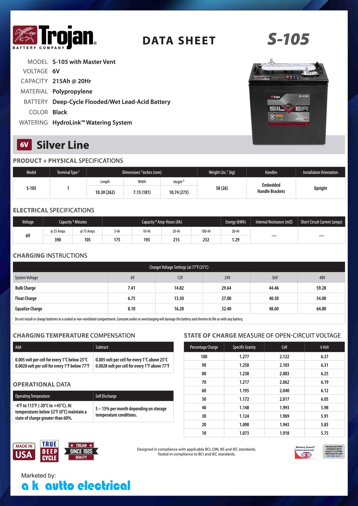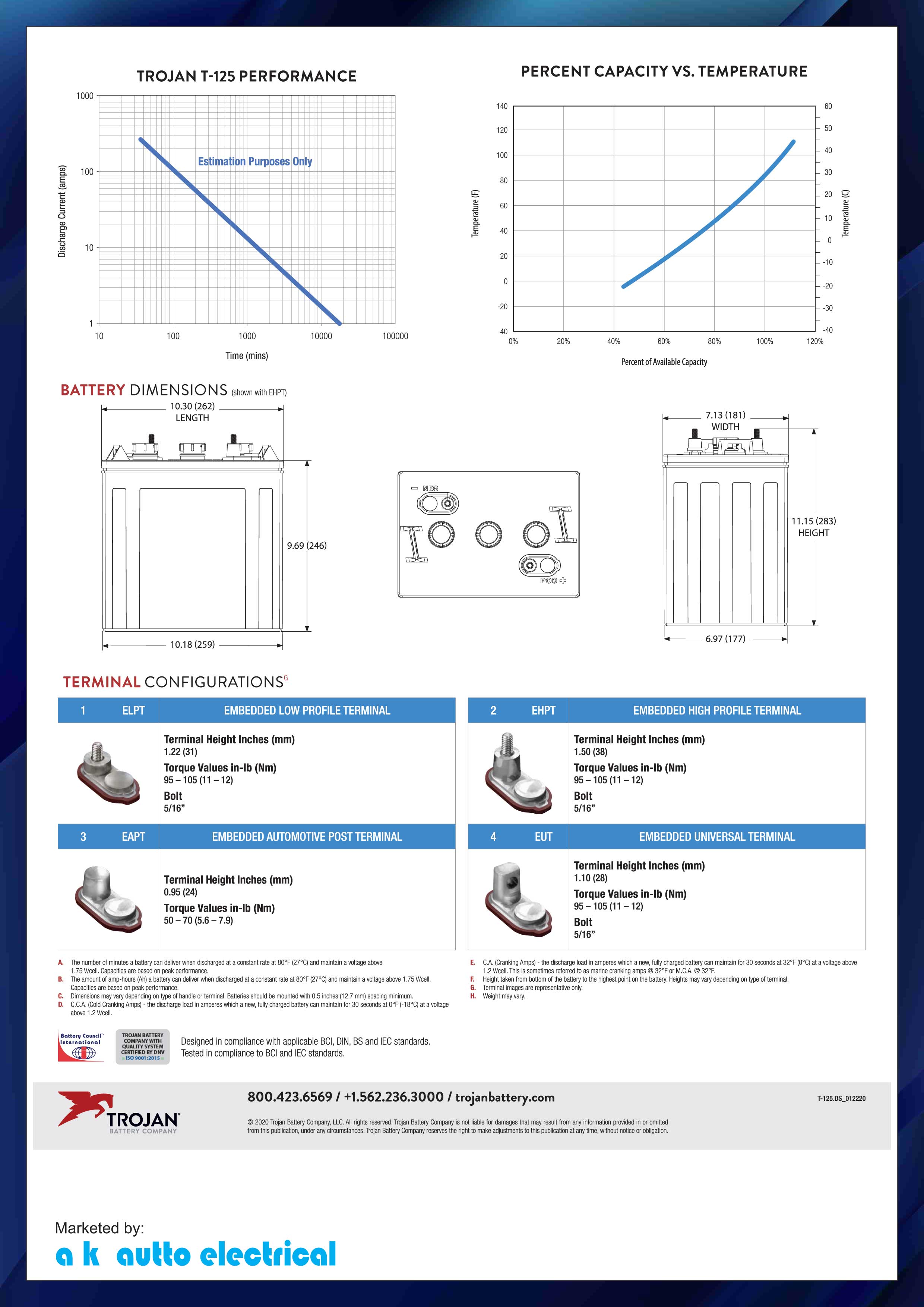 The Trojan Flooded Lead Acid Battery delivers high capacity and high energy