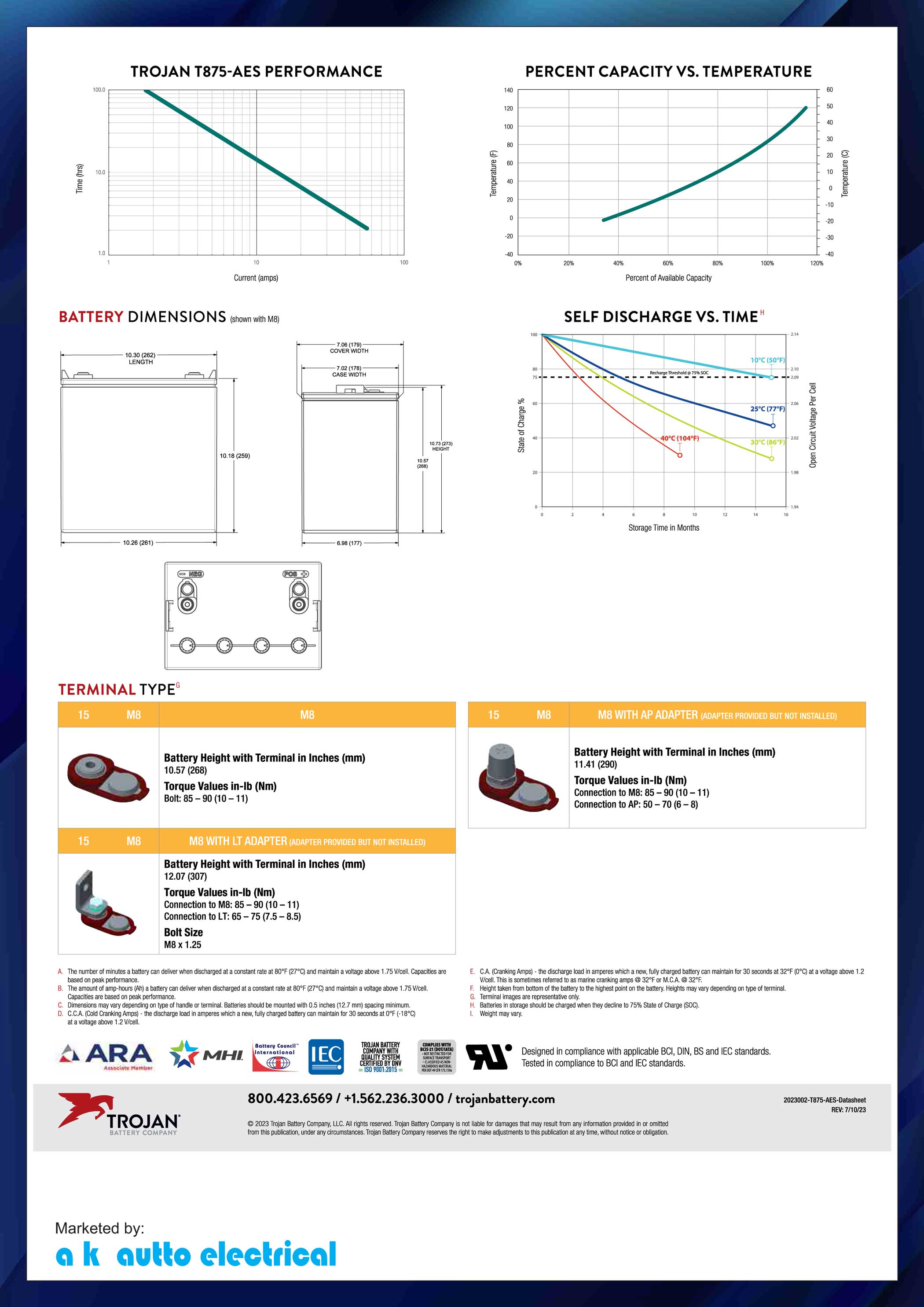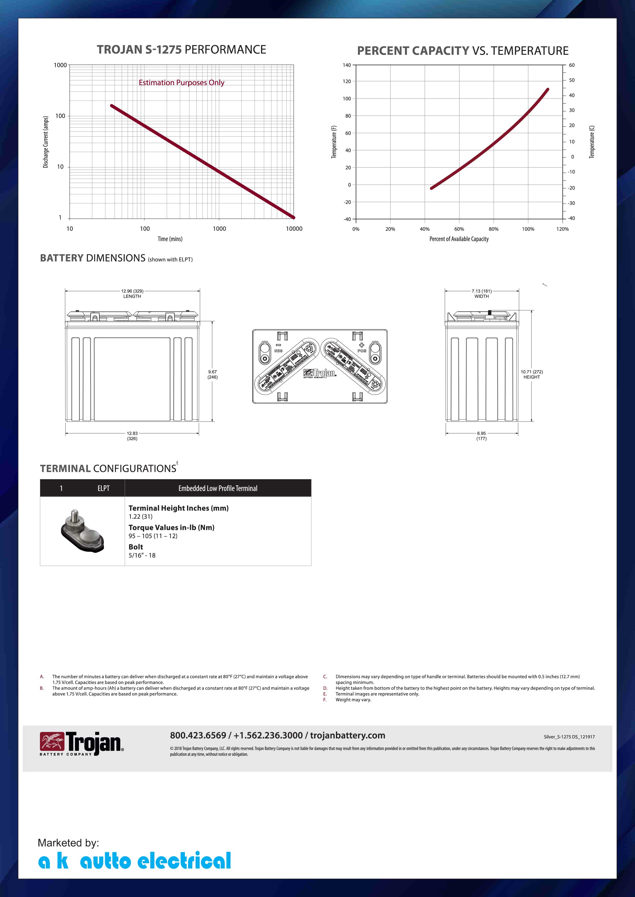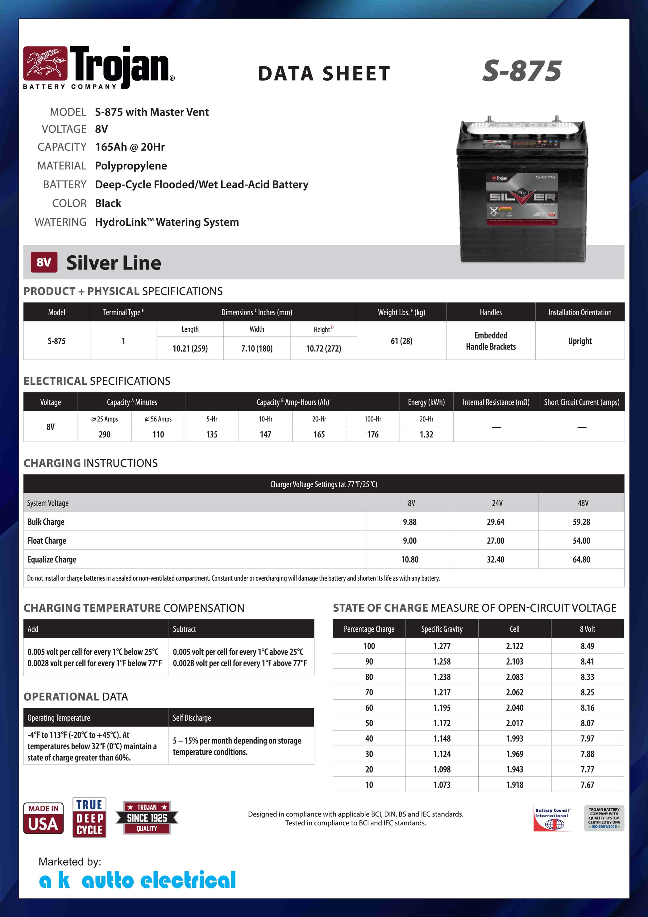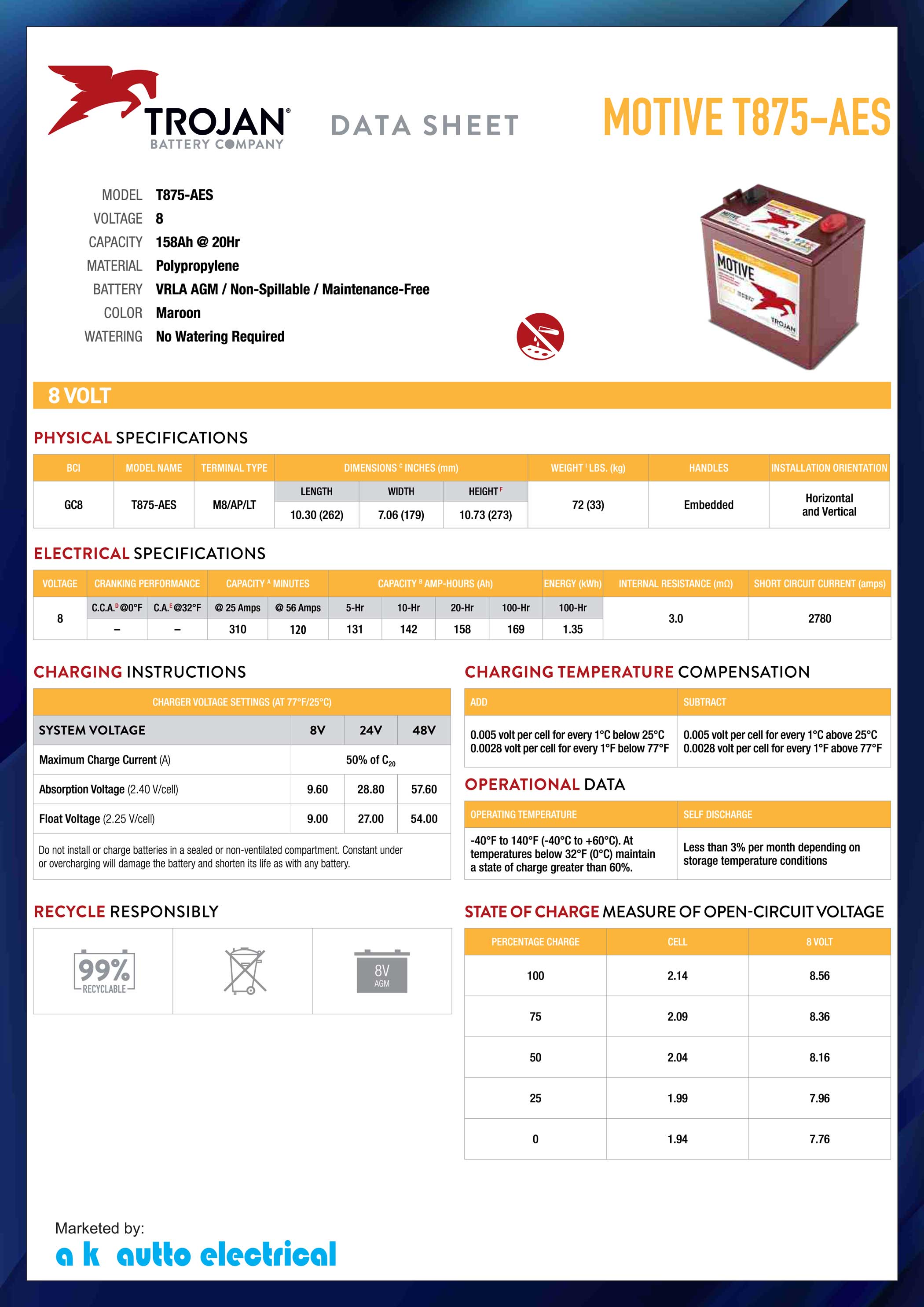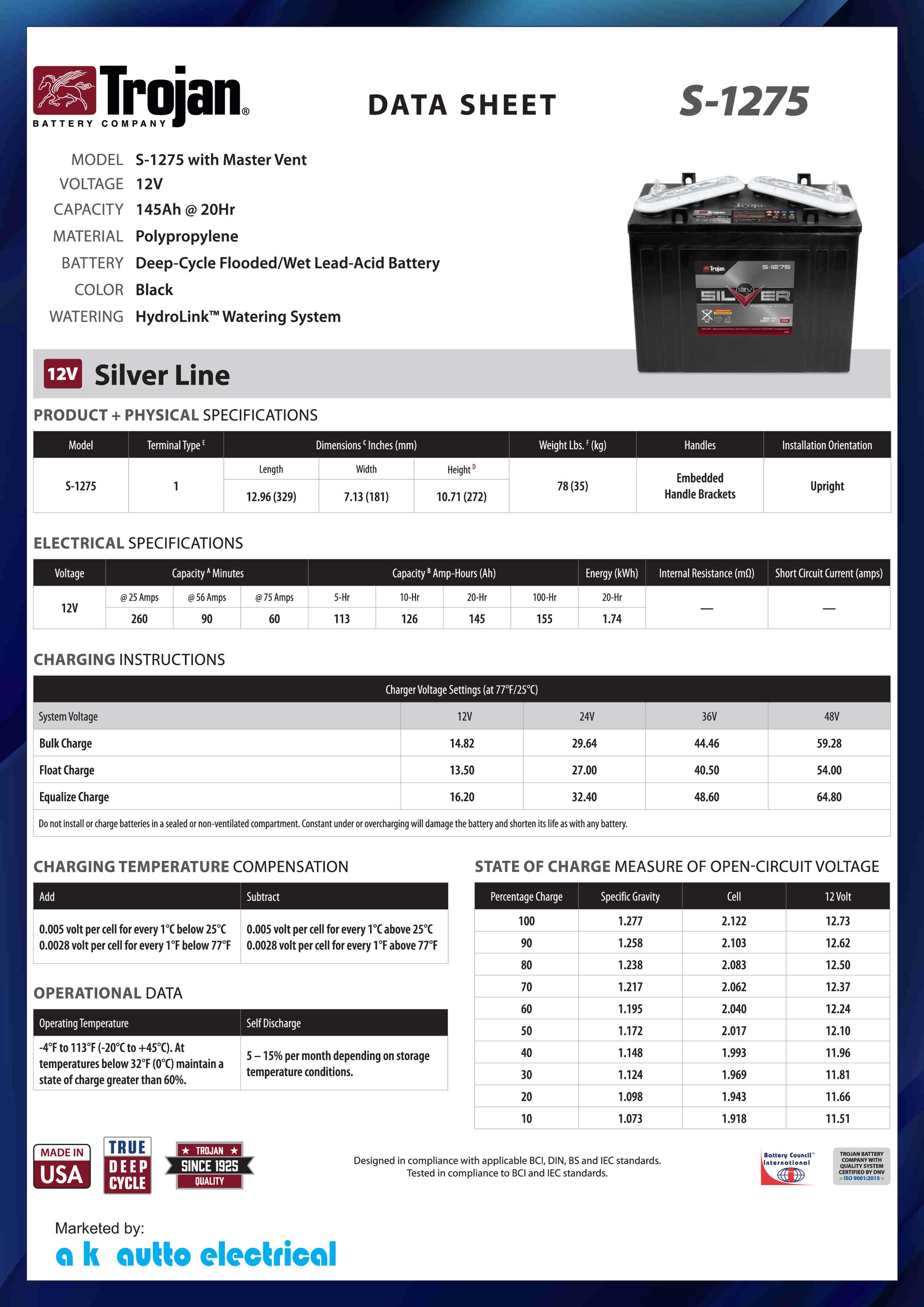 The Trojan Flooded Lead Acid Battery delivers high capacity and high energy